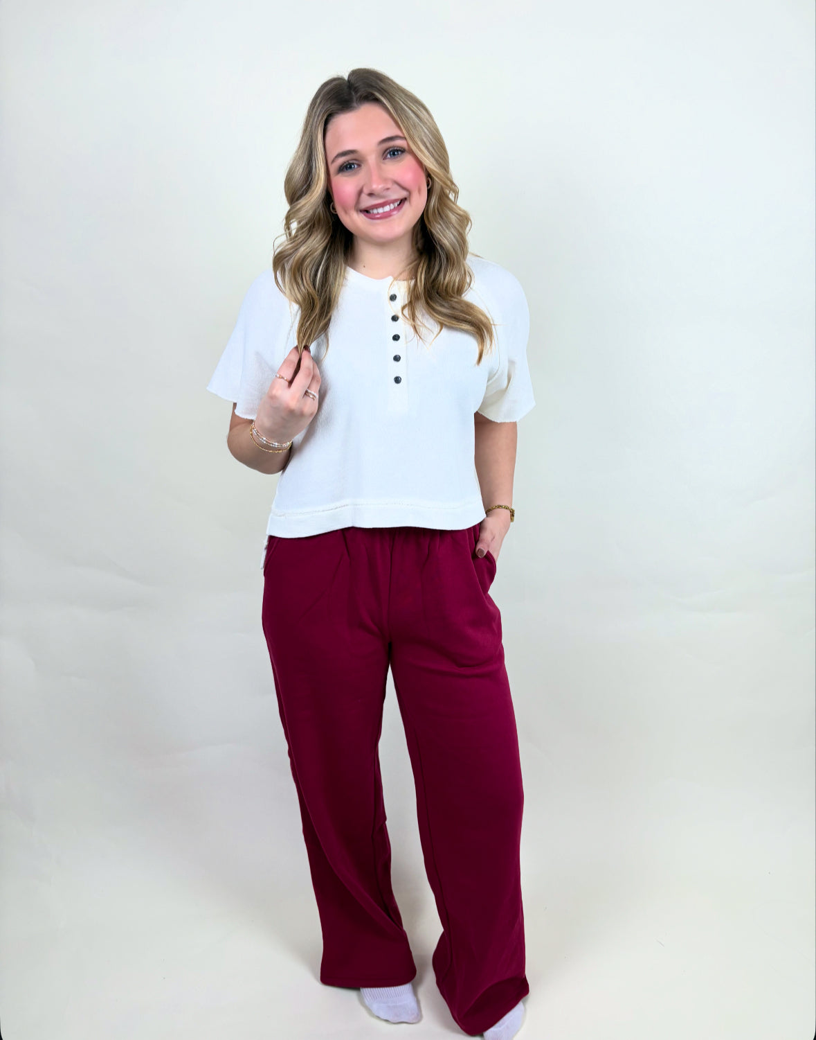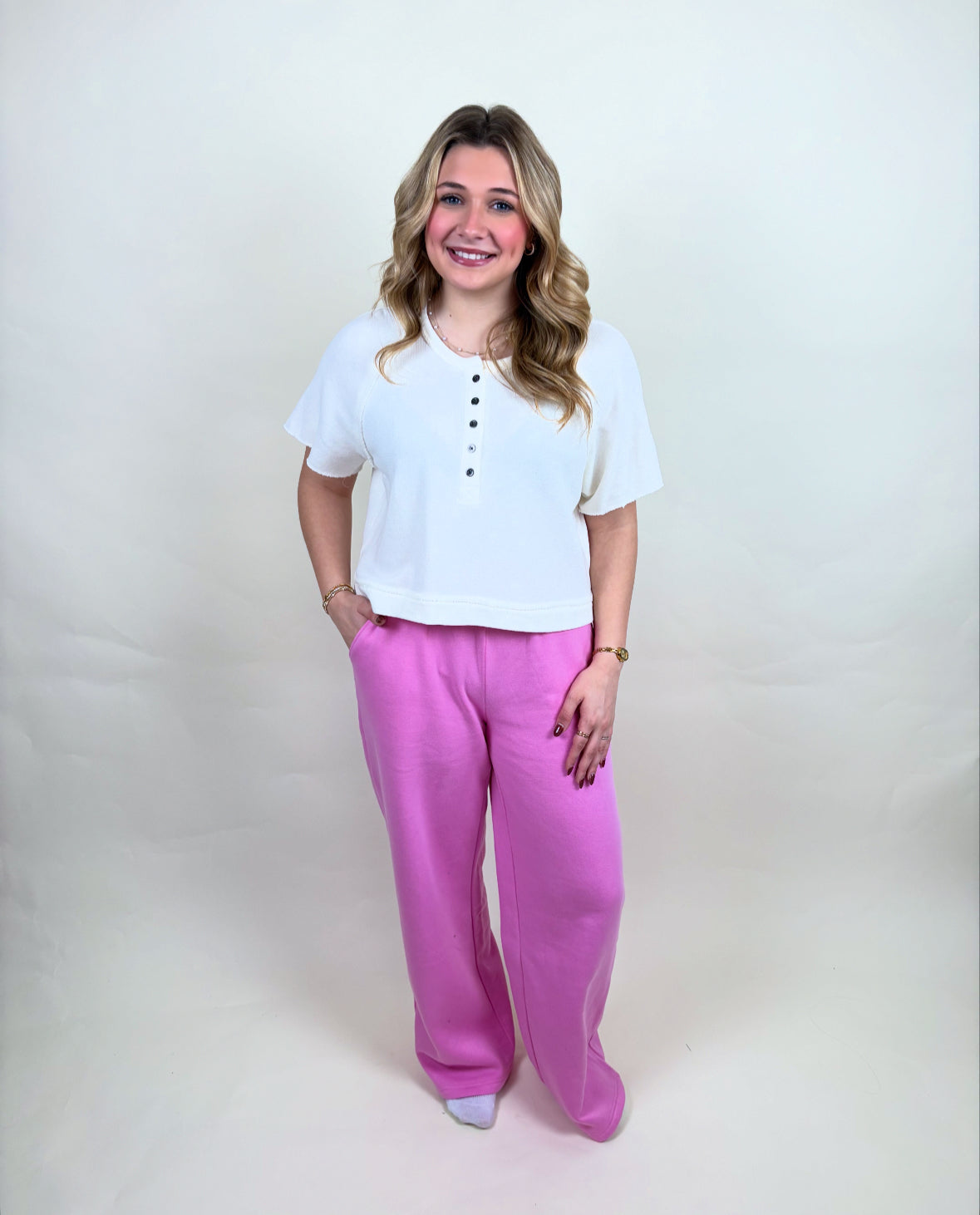 You’re going to want to live in these butter soft fleece sweatpants!! 60% cotton, 40% polyester, high-waisted, elastic waist band, & pockets!