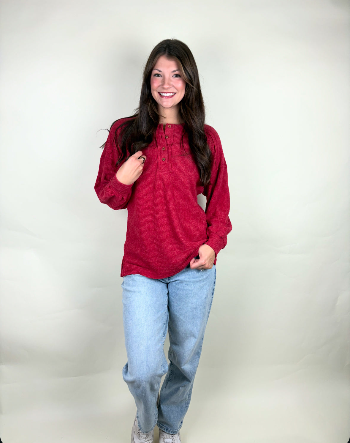 Soft brushed, ribbed Sweater with a nice loose fit!! Perfect for layering or keeping casual!!